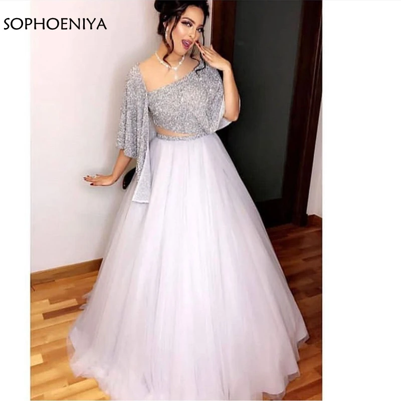 New Arrival Cap sleeve Sequine Lace Evening dresses 2019 Silver muslim evening dress Dubai Kaftan evening gowns avondjurk